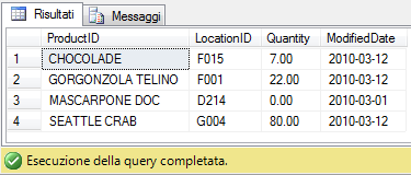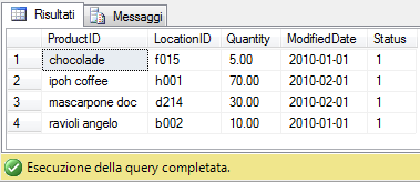 Consultiamo i dati inseriti, che rappresentano le giacenze (logiche) dei prodotti in magazzino: