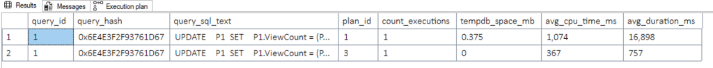 L’analisi delle statistiche di runtime e dei piani di esecuzione relativi a due run della stessa query, uno con Optimized Halloween Protection attivo e l’altro senza, mostra che, per questo esempio, l’uso di questa funzionalità elimina la necessità di spazio in tempdb, riduce il tempo di utilizzo della CPU e accorcia il tempo totale di esecuzione; senza modifiche alla query e all’applicazione.