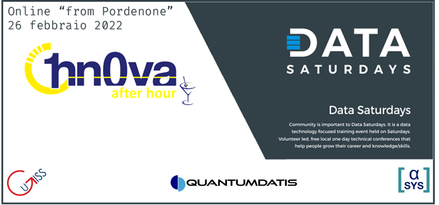 Sabato 24 settembre 2022 la formazione e gli eventi community ritornano in presenza con 1nn0va Saturday 2022! Ospitato nelle aule del Consorzio Universitario di Pordenone in via Prasecco 3/A, sarà gratuito con registrazione obbligatoria, le sessioni verranno registrate ma non saranno in live streaming come accade negli eventi ibridi e non contate sulla pubblicazione veloce delle registrazioni :)
